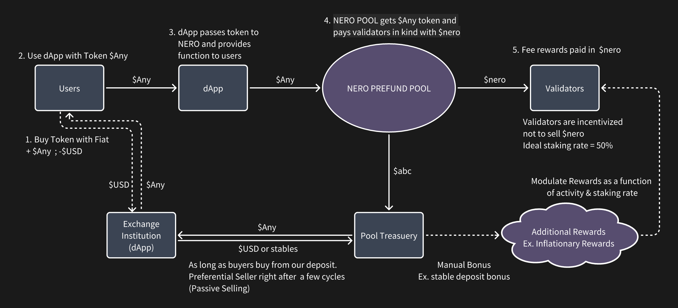 ⚠️ Note: The automatic fee-sharing mechanism described here is a future feature and is not yet active in the current mainnet/testnet. Currently, there is a Fee sharing mechanism as a off-chain agreement with NERO Foundation.