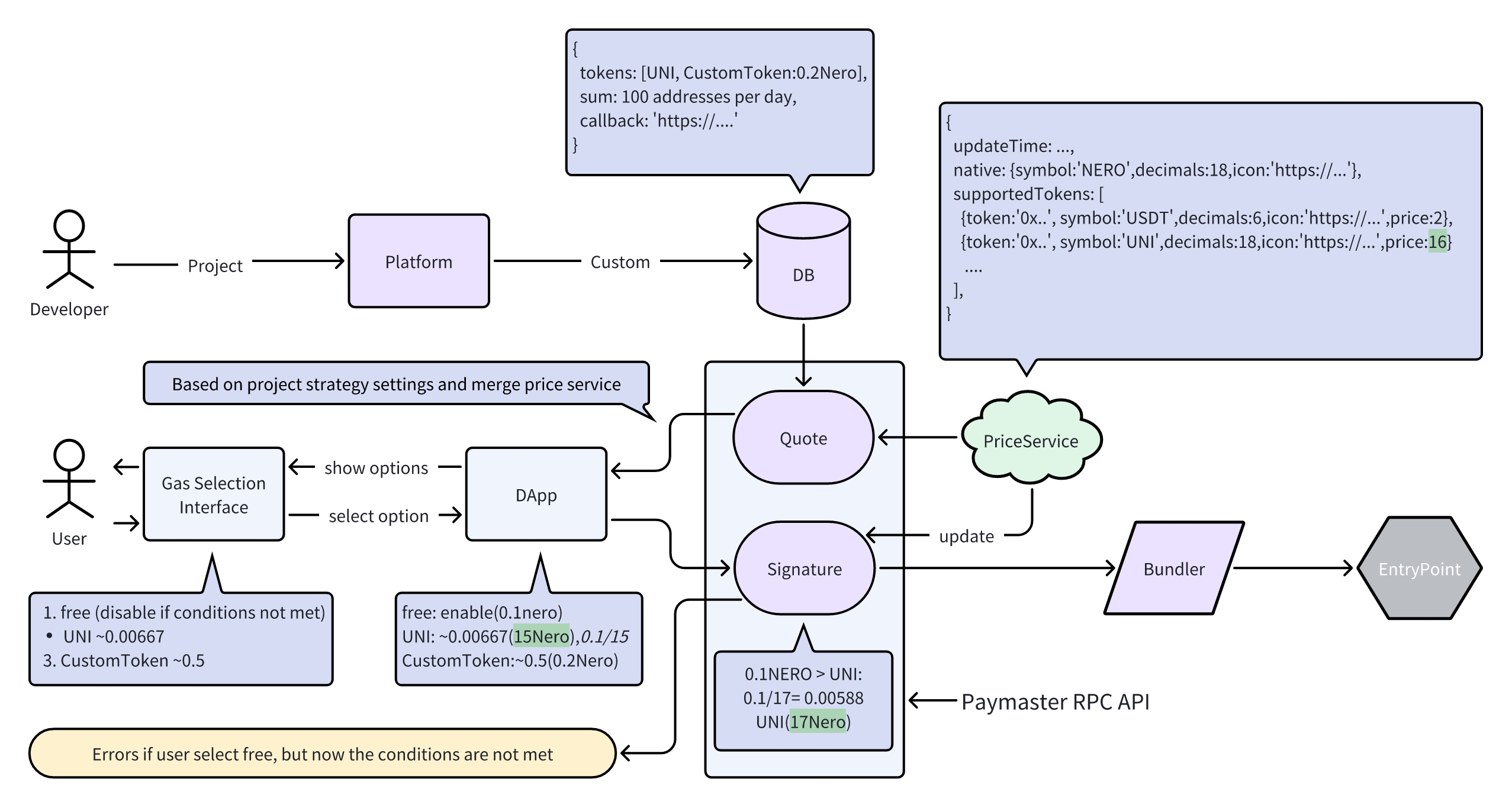 The Paymaster API sits between your dApp and the NERO Chain blockchain, providing services to:
