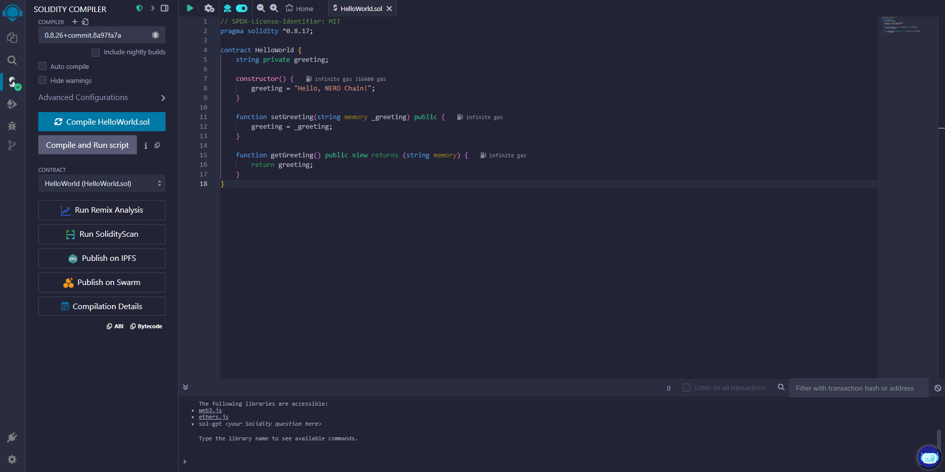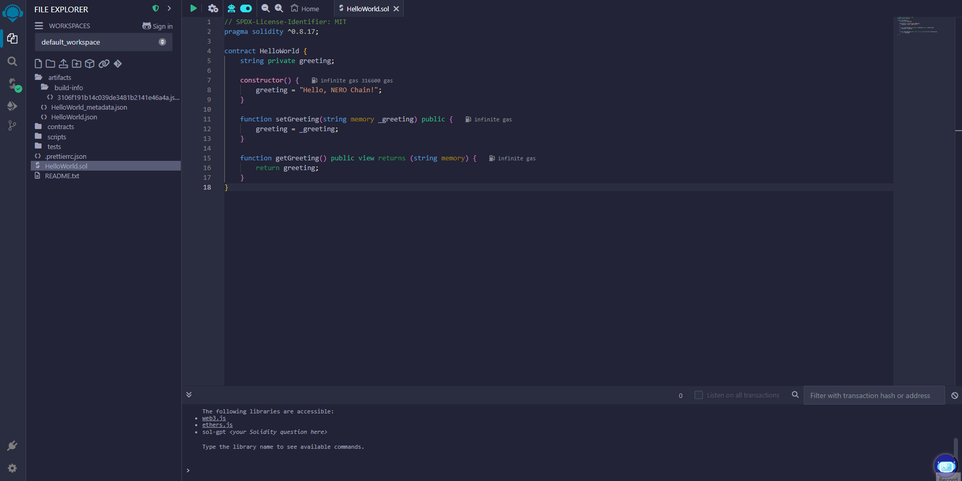 This tutorial will guide you through the process of creating and deploying a smart contract on NERO Chain using the Remix IDE. Remix is a popular, browser-based development environment that requires no setup, making it perfect for beginners.