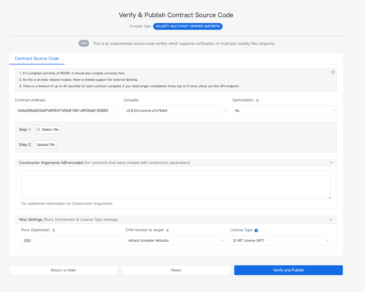 - Constructor Arguments: Enter ABI-encoded constructor arguments (if applicable)